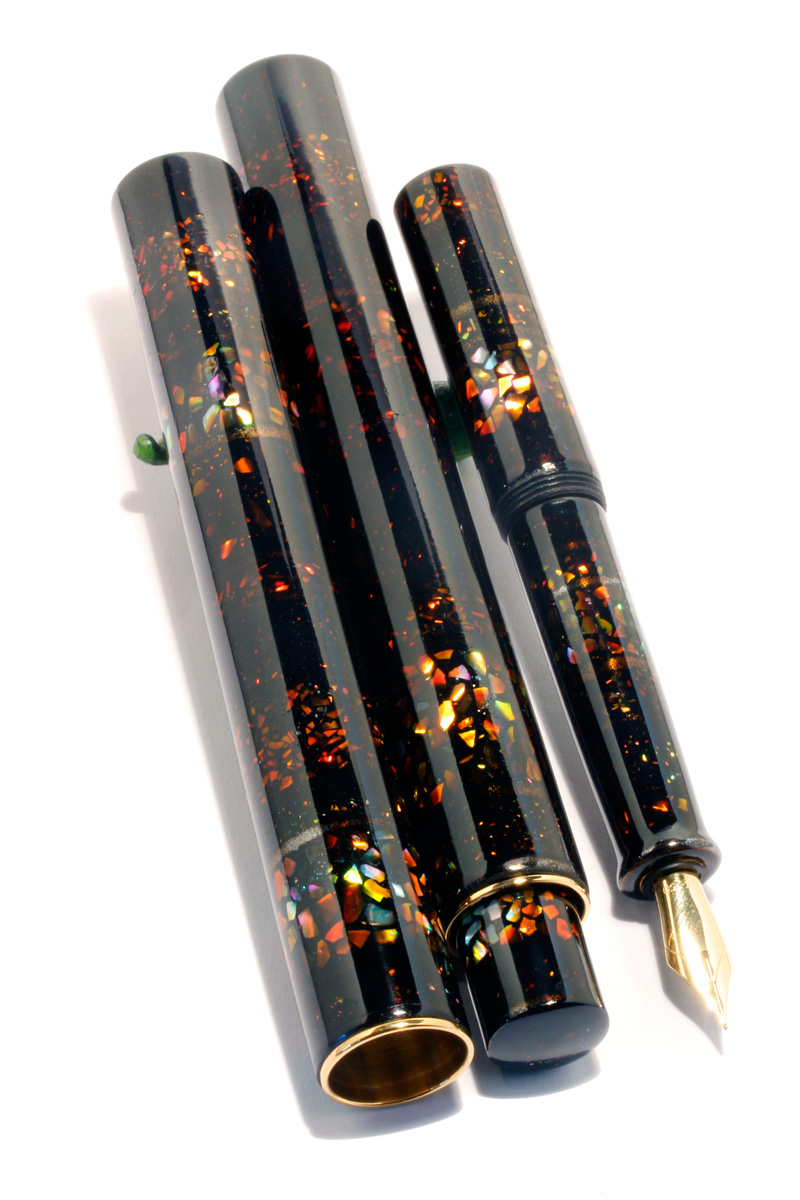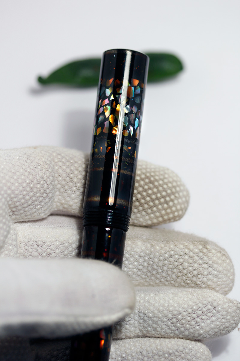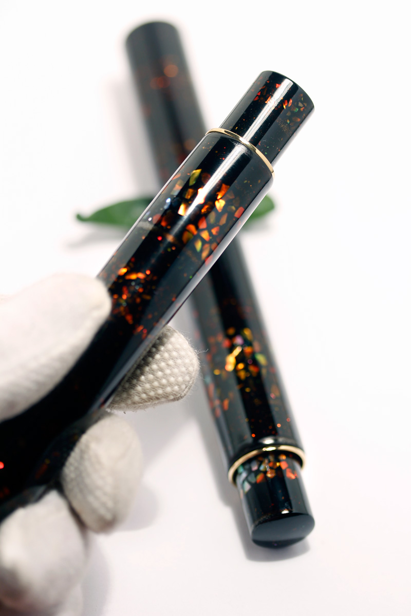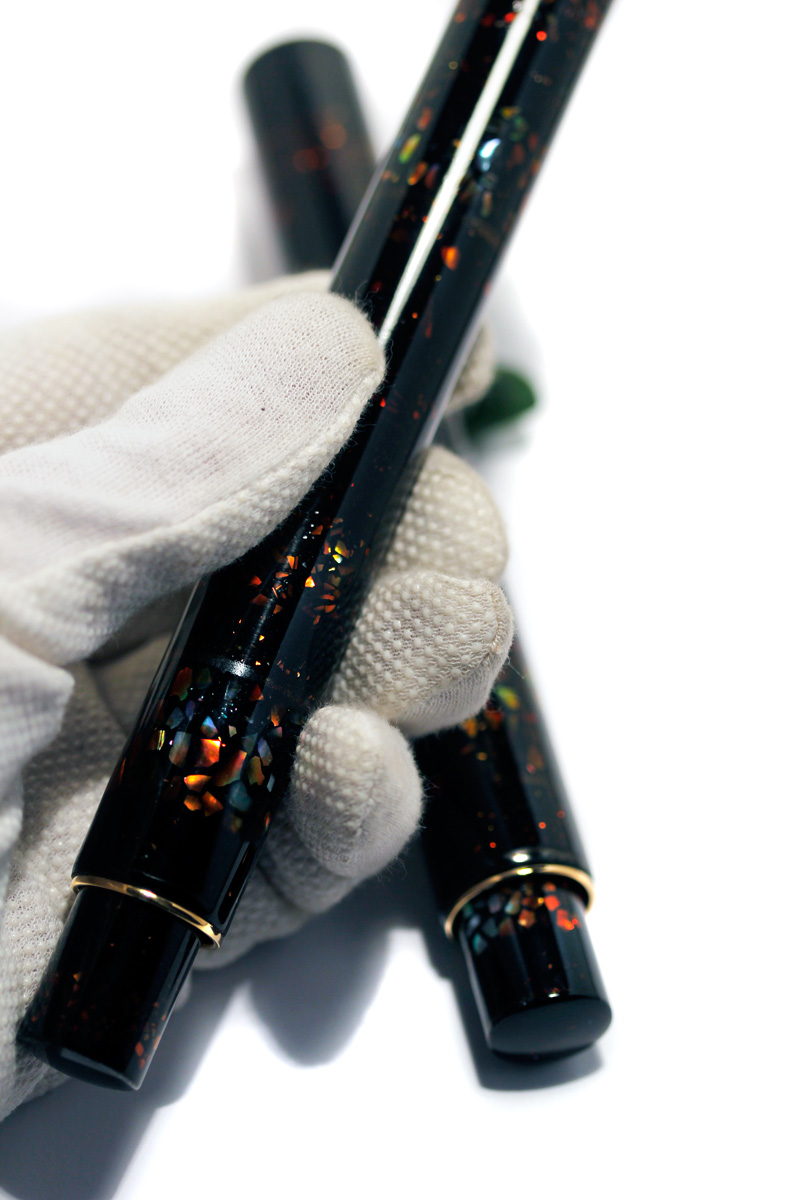 Tame-Raden-Nuri Aogai Lit. mother of pearl, Ra = Mother of Pearl, Den = Sprinkle, Tame = final coat of transparent "sakari-urushi" lacquer