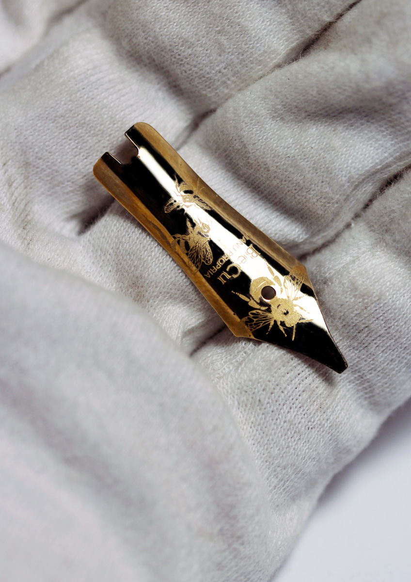 I have been working on the design of the nibs and have decided to choose the bumblebee as my subject. What inspired me to do this were the actual and attributed symbolic characteristics of this extraordinary insect. The bumblebee is a small miracle of nature: too heavy, too round—and yet it flies. The bumble bees’ paradox is its compact power, tire-less motion and beauty born of defiance.